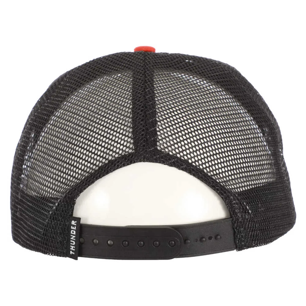 Il Cappellino Thunder Evil Trucker Hat Red Black è un cappellino stile trucker da uomo bicolore con misura standard. Questo cappellino ha una chiusura snapback regolabile ed è abbellito da una grande ricamo logo frontale.