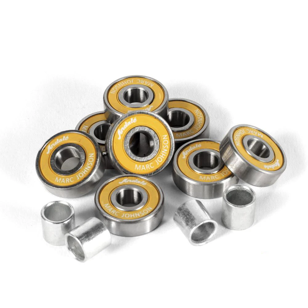 I Cuscinetti Andale Bearing Notepad Marc Johnson sono una bomba! Sono il pro model di Marc Johnson e girano bene quanto sono belli. Non fatevi ingannare dagli ABEC, Questi cuscinetti sono Pro-Rated, il che garantisce velocità e durevolezza sullo skate.
