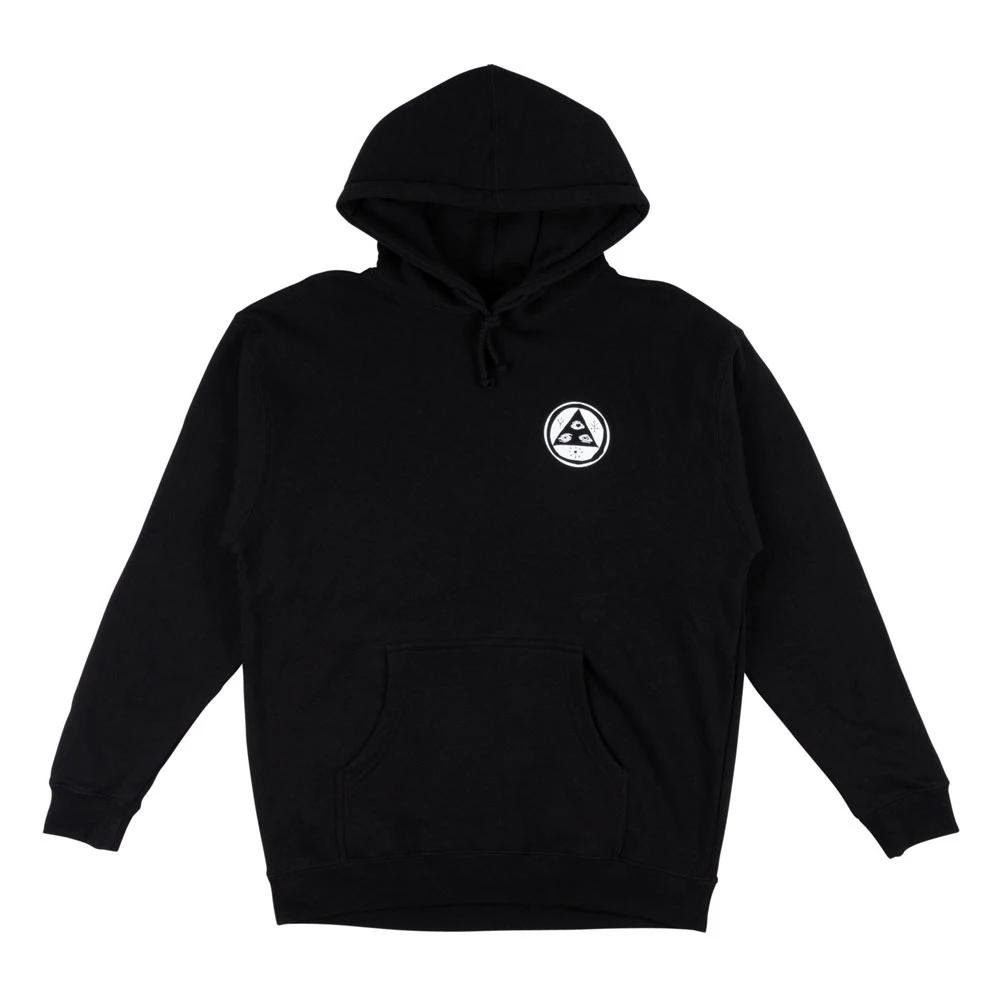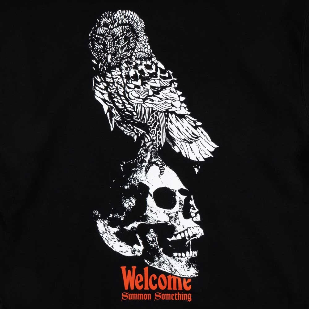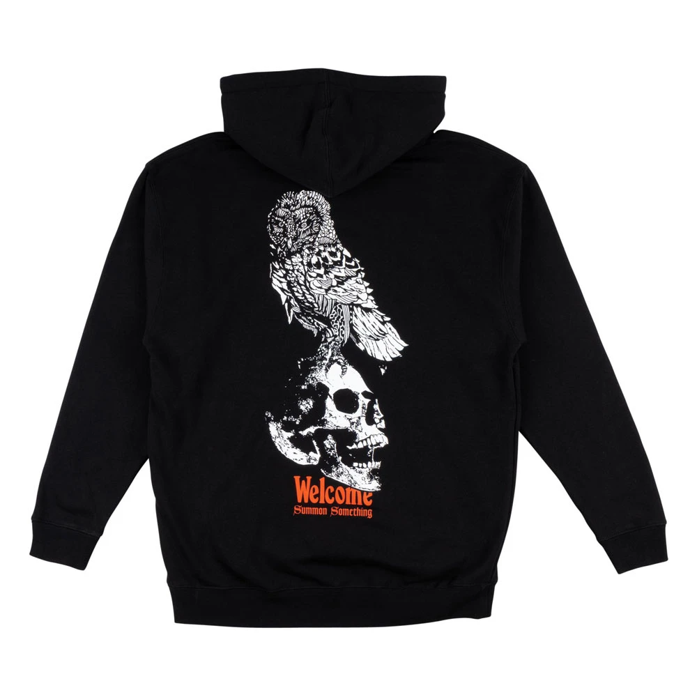 La Felpa Welcome Skate Bird Brain Hoodie Black è realizzata in felpa garzata 330gsm, vestibilità regolare, felpa con cappuccio con tasca a marsupio, stampa logo sul petto e grande stampa sul retro.