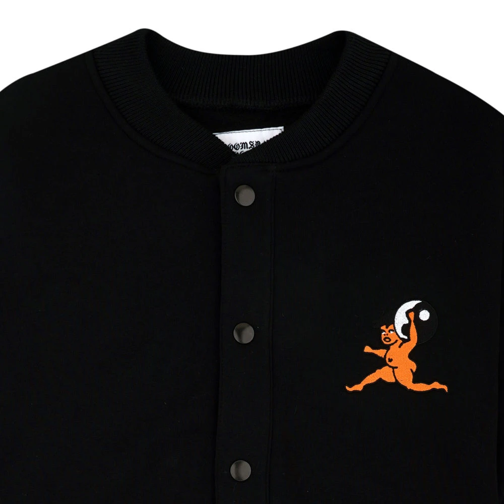 La Giacca Doomsday Taoboy Varsity Embroidered Crewneck Black è una giacca stile college del marchio italiano del rapper Salmo & c., ed è da anni un riferimento per la moda streetwear dei giovani di mezza Europa.
