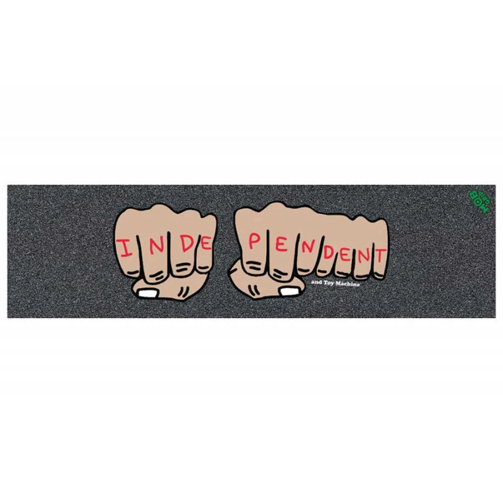 Il Griptape Mob Grip Independent X Toy Machine Fists dispone di un processo innovativo che blocca le illustrazioni a colori e fotografie chiare di cristallo nella grip, senza sacrificare la durata, presa, e a sentire chi lo usa questo lo rende la scelta n°1 degli skater professionisti.