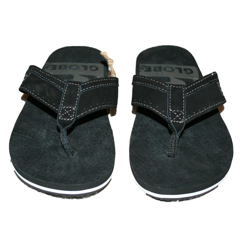Le ciabatte Infradito da uomo e ragazzo Globe Base Black sono realizzate esternamente in Pelle e Foderate in Cuoio e tessuto sintetico, mentre la suola è in Gomma senza tacco.