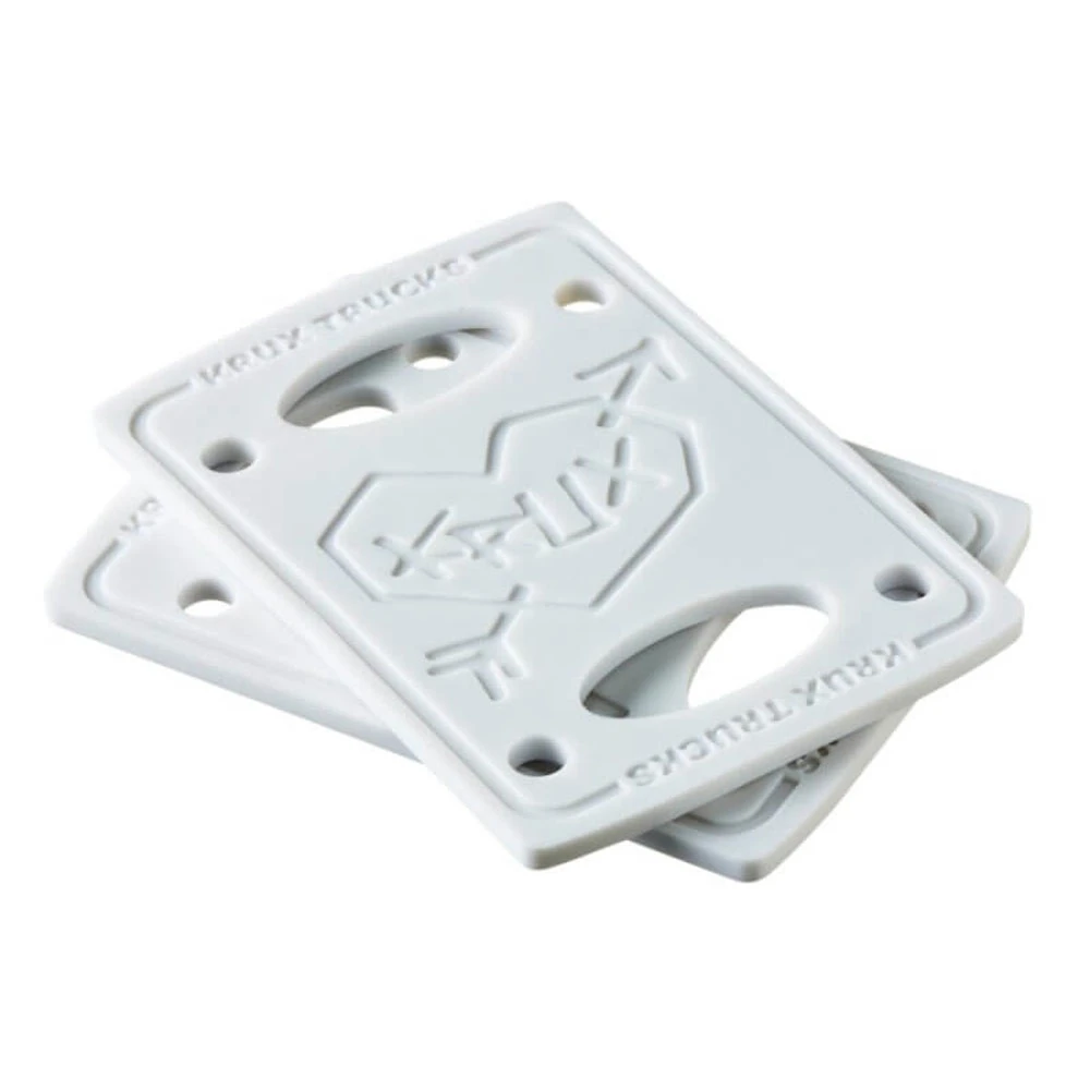 Coppia dei nuovi Krux Riser Pads 1/8” utilizzabili su ogni tipo di skateboard di nuova generazione. Sono forati per ogni tipologia di Trucks nuovi. Usateli per aumentare il gioco ruota se si sta utilizzando i truck sfusi o ruote più grandi.