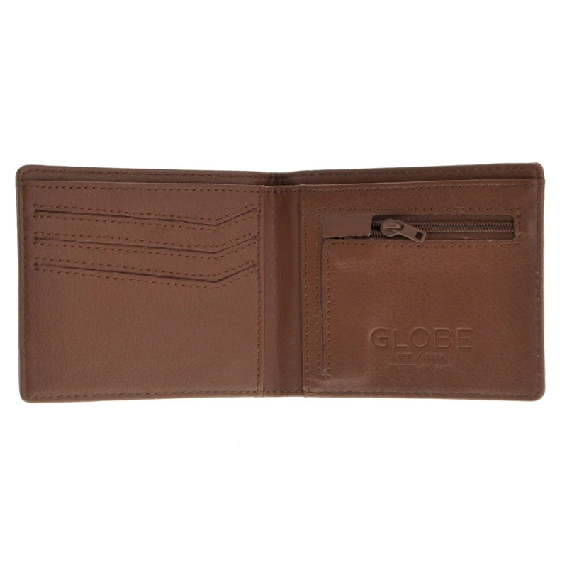 Il Portafogli da uomo Globe Corroded Wallet Brown è un portafoglio della marca Globe di colore nero con portamonete e 3 slot per schede per una misura di 11 x 9 cm.