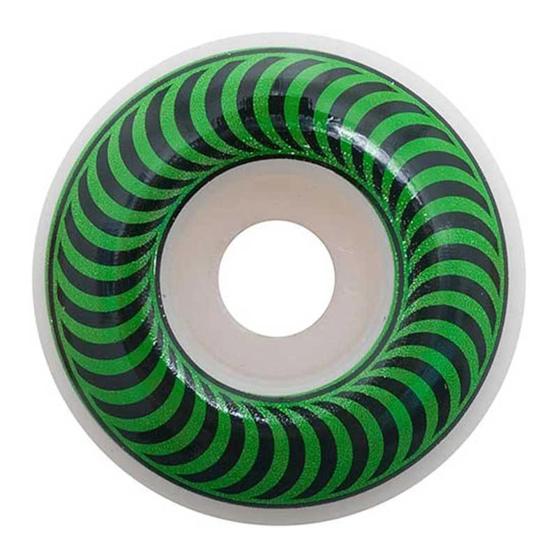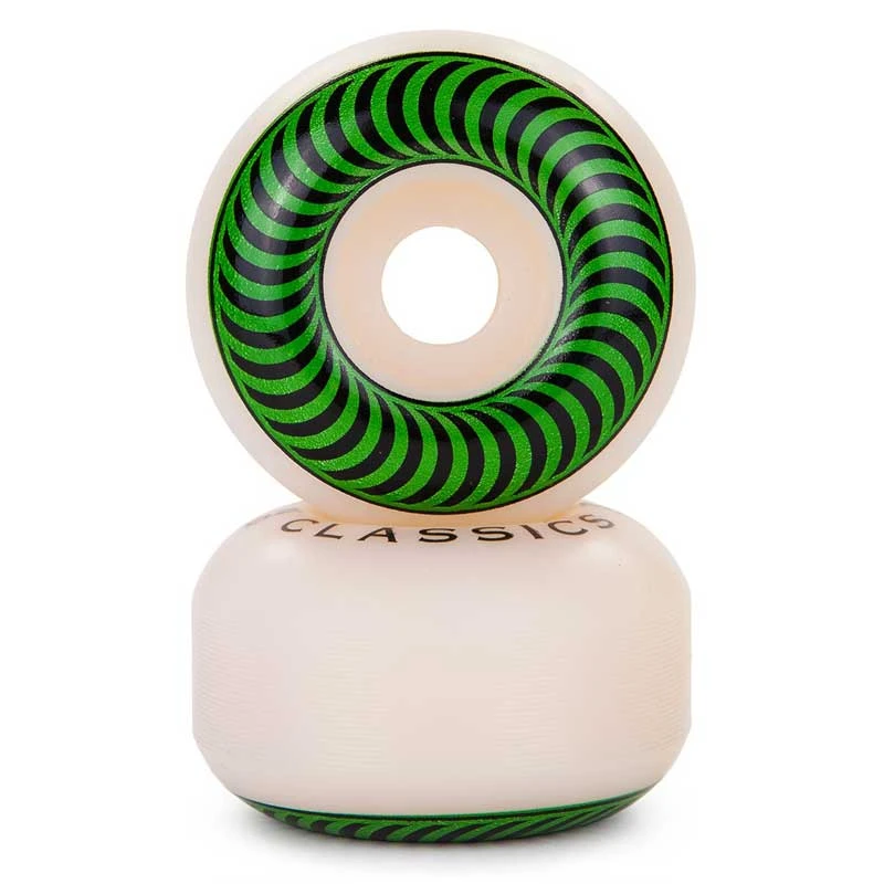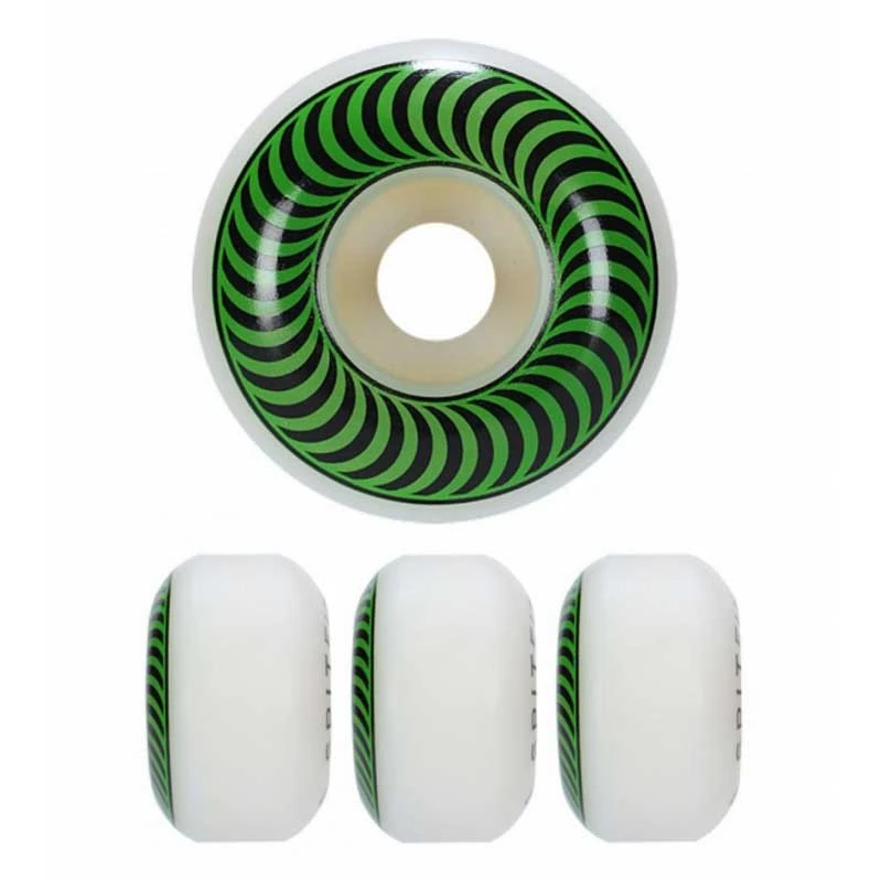 Queste Ruote da Skate Spitfire Classics 52 millimetri di colore Verde / Nero / Bianco sono vendute in un pack di quattro ruote. Ottime per tutte le superfici. Ogni ruota è modellata e progettata per raggiungere e mantenere una buona stabilità anche ad alte velocità, non importa quale stile di skateboarding stiate praticando se su strada o su rampa. Infatti, Spitfire è sinonimo da sempre di velocità, stblità e duratura.