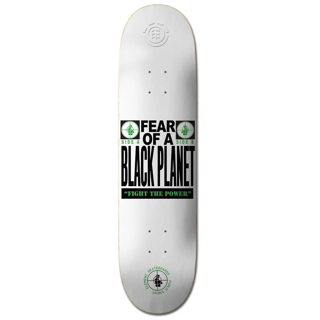 La Tavola da Skate Element Public Enemy Pexe Fear 8.5” è un modello nato dalla collaborazione con la band Public Enemy, ed è una tavola versatile da personalizzare a piacimento. La Tavola da 8,5 pollici è realizzata al 100% in legno di acero, resistente e robusto. Sui cordoli della strada, in half pipe o in giro per lo skate park, questa tavola resistente agli impatti è durissima a morire. 100% acero canadese a 7 strati di prima qualità [resina]. Stampa: fondo trasferito a caldo con uno strato trasparente e uno metallizzato.