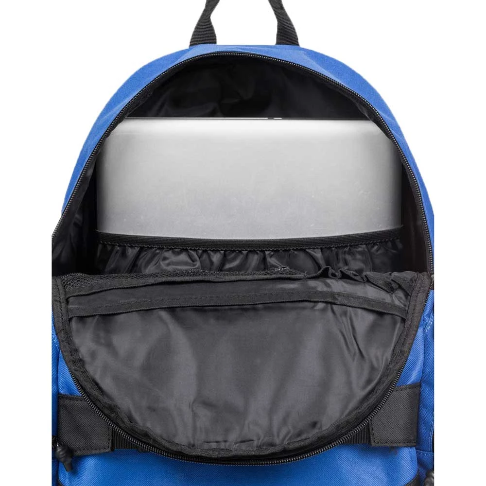 Lo Zaino DC Shoes Lock Clocker Nautical Blue è uno Zaino medio da Uomo realizzato in tessuto in poliestere resistente con Tasche laterali esterne, Cinturini per lo skate sul davanti e Pannello anteriore in contrasto con ricamo Logo DC.