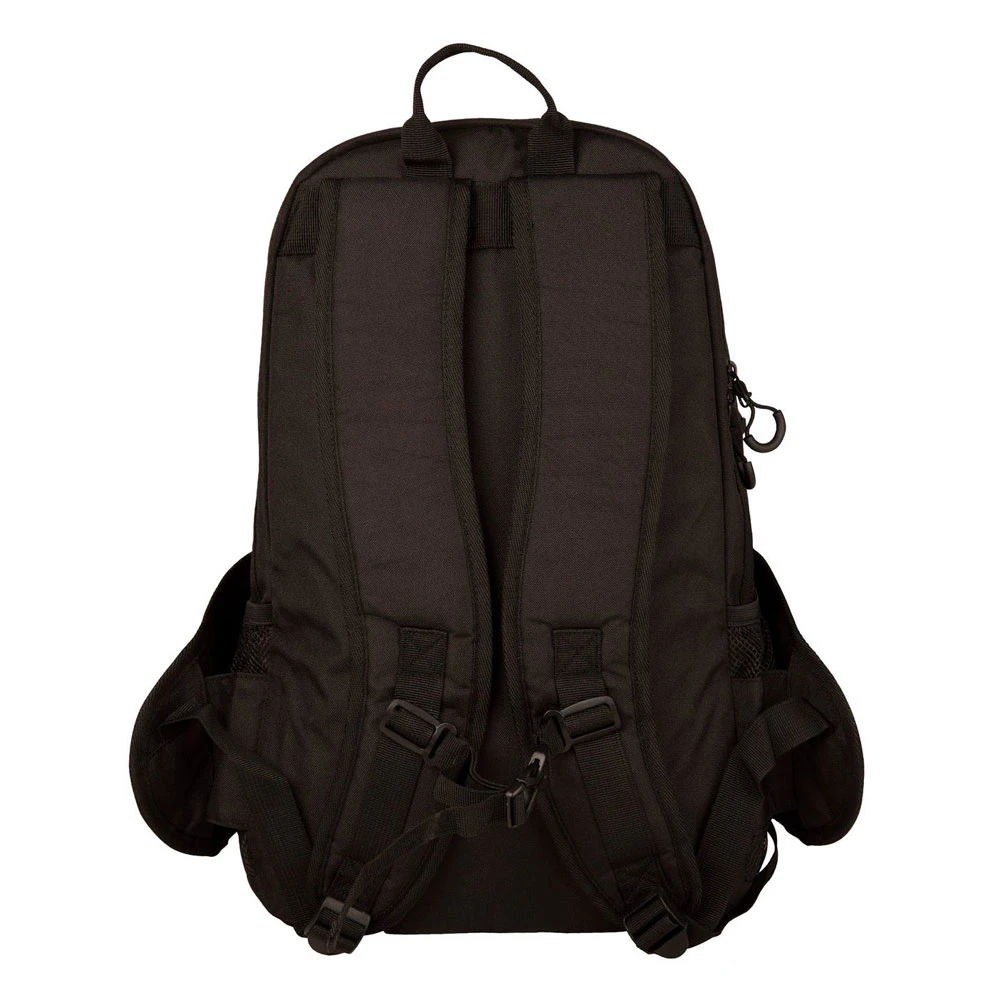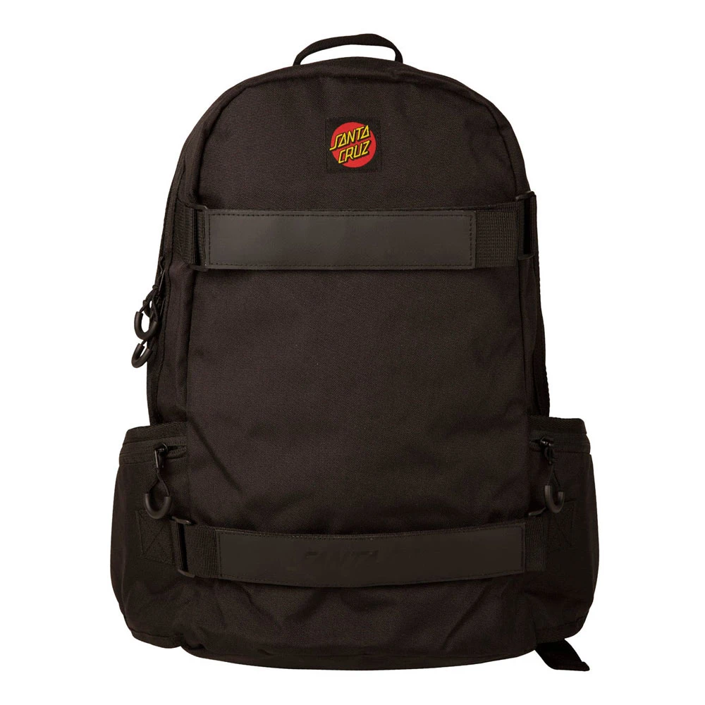 Lo Zaino Santa Cruz Classic Label Skatepack Black è uno zaino in poliestere, 900D con cinturini da skate, varie tasche, custodia per laptop ed etichetta tessuta con marchio frontale.